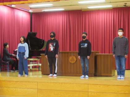 さすが6年生 公開日 2023/03/14 更新日 2023/03/14 6年生 今週末の卒業式に向けての練習の様子です。さすが、6年生、心をこめて練習に取り組んでいます。歌や言葉に気持ちが入っています。