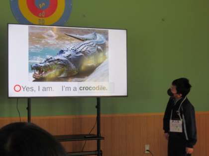 3年生は、クイズをまじえた英語劇の発表を行いました。4年生や先生方に見てもらいました。