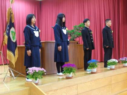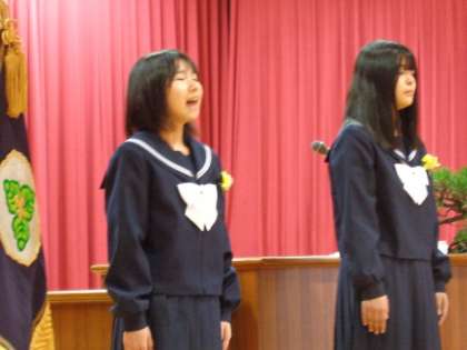 旅立ちの言葉での6年生です。思いを込めて、これまでの学校生活を振り返りました。また、感謝の思いも伝えました。