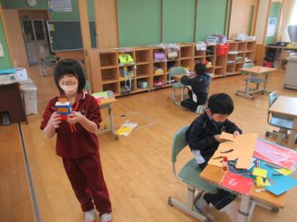 1・2年生は図工を行っていました。とても楽しそうに絵をかいたり、工作したりしていました。