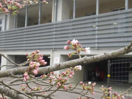 昨日は、富山で桜の開花宣言がありましたが、今日本校前の桜も開花しました。春本番を感じます。