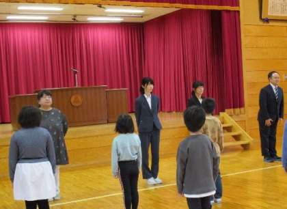 始業式では、教職員の紹介を行いました。新しい担任と出会い、子供たちはとてもうれしそうでした。