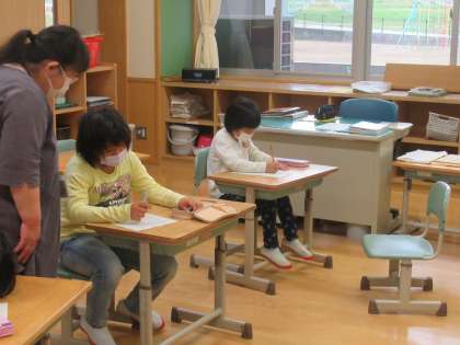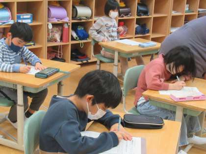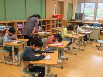 2・3年生は、新学年でのめあてを書いていました。意欲満々の子供たち、きっと夢あふれるめあてになっていることでしょう。
