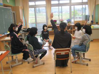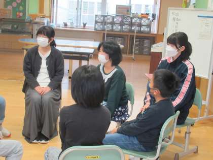 4年生は、みんなで楽しくゲームを行っていました。新担任と盛り上がっていました。
