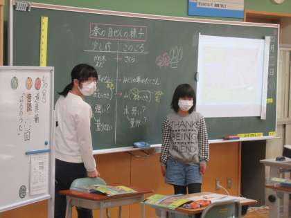 春の季節は 公開日 2023/04/11 更新日 2023/04/11 4年生 4年生は、季節と植物の変化について学習しています。いろいろな変化について話し合っていました。そのあと、パソコンのカメラ機能を使って記録をとりにいきました。たくさんのことが見つかったことでしょう。
