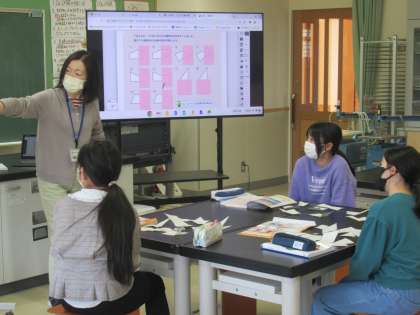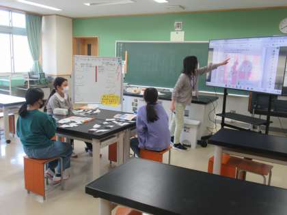 6年生の算数では、大型モニターを有効に活用しながら学習していました。大きな画面に映った教材を見て、子供たちは楽しそうに学習していました。