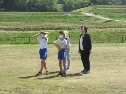 5年生理科では天気の変化を学習しています。この日は、雲が関係あるかどうか、実際の雲を見ながら考えました。