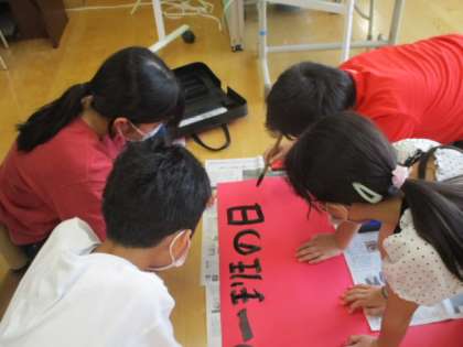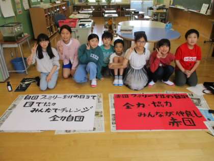 先日、各団で話し合い決定したファミリー班の目当てを、5・6年生で画用紙に書きました。