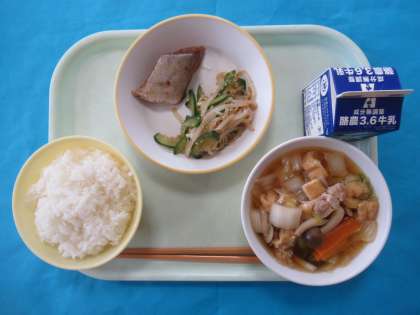 4月21日の給食は、ごはん、ぎゅうにゅう、ふくらぎのてりやき、ごまずあえ、ちゃんこなべです。富山でよくとれるふくらぎのおいしさを、改めて感じることができました。