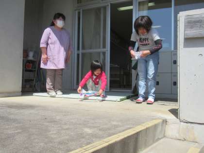 色セロハンに光を通して、作品作りに取り組みました。色がついた光を見ると、さらに工夫してみようという意欲もわき上がったようです。