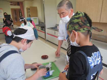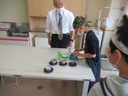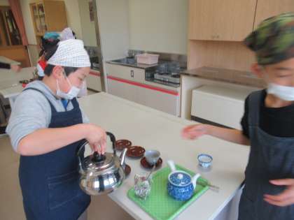 5年生は、家庭科でお茶の入れ方について学びました。急須を使って、おいしいお茶になるよう取り組みました。