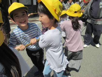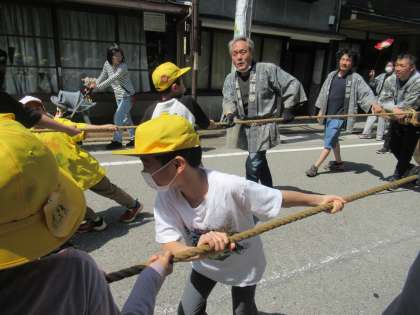 山に近いところを曳いていた子供たちは、とても重かったようです。