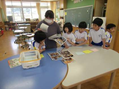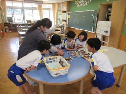 2・3年生は、写真を見ながらふりかえりを行いました。たくさんの発見があったようです。カードに思いをたくさん書きました。