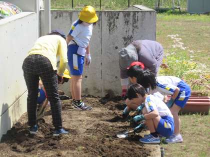 今年もたくさんのチューリップが咲きました。球根を掘り出し、片付けを行いました。次の花壇づくりが始まります。