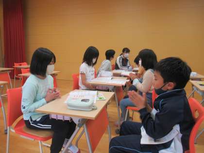 4年生の音楽では、ペアを組んでリズムうちの練習をしました。助け合いながらがんばっていました。