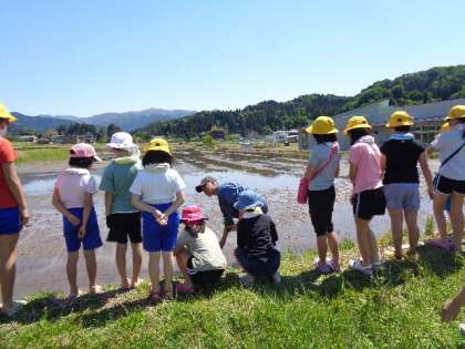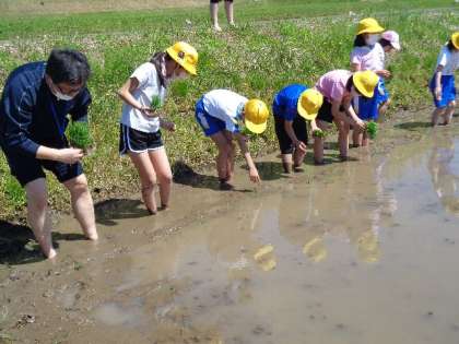田植え体験1 公開日 2023/05/17 更新日 2023/05/17 学校風景 5月11日、地域のみなさま、保護者のみなさまのご協力を得て、今年度も田植えを行うことが出来ました。ご協力いただき、ありがとうございました。