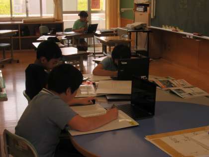 5年生は、端末を使って、熱心に調べ活動を行っていました。