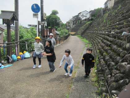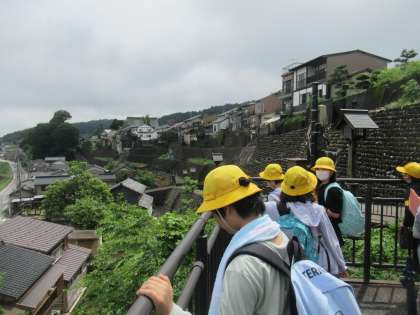 旧町から井田川を眺めるすてきな景観を見つけました。子供たちは、しばしその風景に見とれました。
