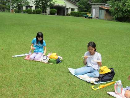 城が山公園では、たのしみなお弁当です。たくさん歩いて、子供たちはおいしいお弁当をもりもり食べていました。