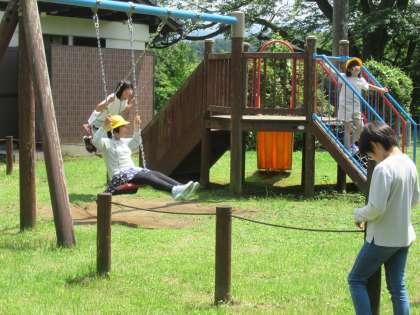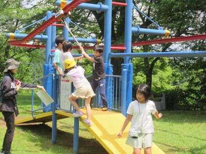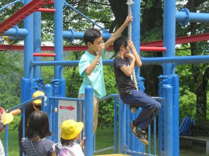 遊び時間は、公園の遊具をなかよく使いました。順番を守ったり、ゆずりあったりしました。