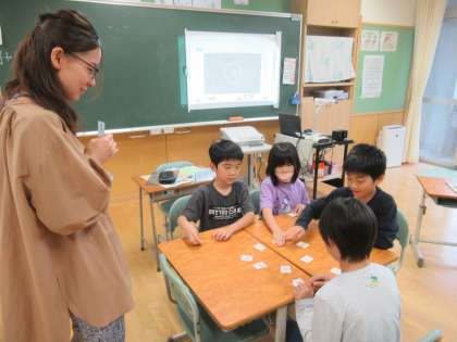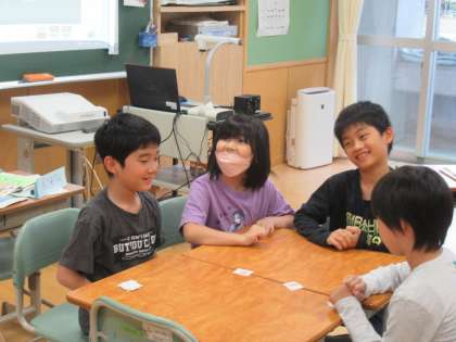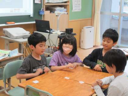カードで楽しく 公開日 2023/06/02 更新日 2023/06/02 3年生 外国語活動では、英語で言われた数字のカードを取り合うゲームを行っていました。英語をよく聞き、とても楽しそうに活動していました。