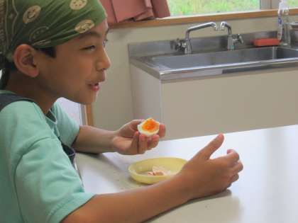 ゆでたまごづくり2 公開日 2023/06/05 更新日 2023/06/05 5年生 時間によってかたさが違うことが分かり、それぞれの好みや料理によって変えればよいことが分かりました。時間によってずいぶん違いがあり、子供たちはそれぞれのゆでたまごを見ておどろいていました。