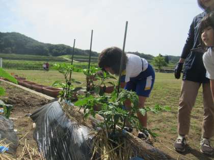 今日も、ピーマンが大きくなっていました。収穫は、大きな喜びを感じる瞬間です。とてもうれしそうに収穫していました。