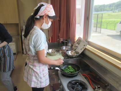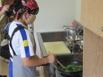 あおないためとスクランブルエッグ1 公開日 2023/06/07 更新日 2023/06/07 6年生 6年生は、家庭科であおないためとスクランブルエッグづくりに挑戦です。ふわふわのスクランブルエッグになるよう、いろいろと工夫しました。