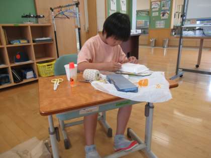理科で学習したゴム・風のせいしつを生かして、おもちゃづくりに取り組んでいます。とても楽しそうでした。