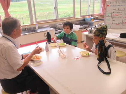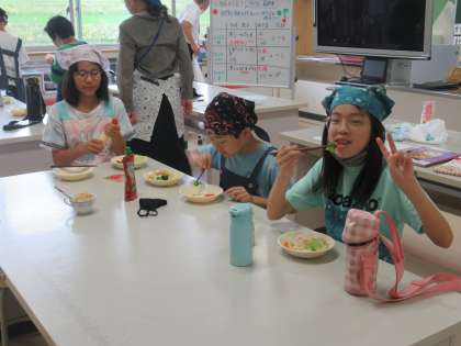 ゆでやさいサラダ 公開日 2023/06/16 更新日 2023/06/16 5年生 家庭科の調理実習で、ゆで野菜サラダ作りに取り組みました。野菜をゆでると思った以上にあまみを感じ、子供たちはもりもり食べていました。