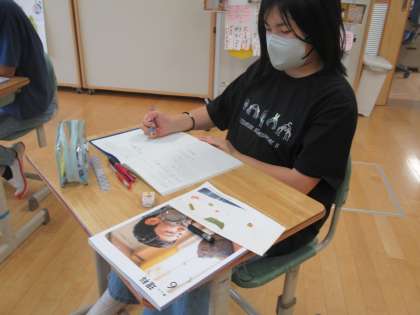 ジャガイモを赤い色水につけると、きれいにそまりました。くきや葉を切って、水の通り道を観察し、ノートにまとめました。植物が水を必要とするわけがよく分かったことでしょう。