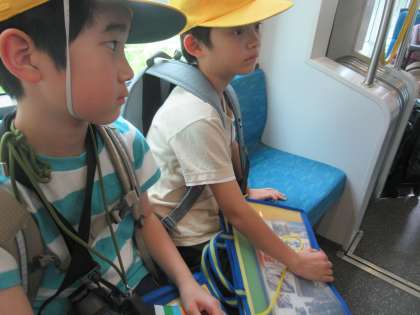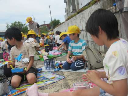次にライトレールに乗って、岩瀬浜を目指しました。岩瀬浜ではお弁当をいただきました。八尾小学校のみなさんと楽しく食べました。