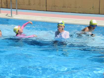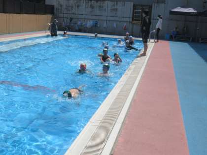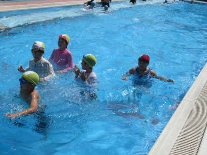 今年初めてのプール、全校児童で入りました。子供たちはとても楽しそうでした。