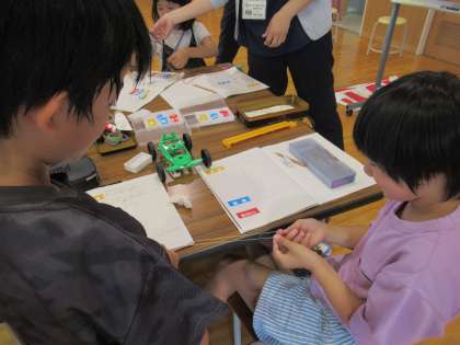 ゴムのなぞを追究 公開日 2023/06/29 更新日 2023/06/29 3年生 3年生は、理科でゴムの力のなぞを追究しています。この日は、ゴムの種類を変えて車の走り方を調べてました。子供たちは、夢中になって車を走らせて、ゴムのなぞを明らかにしていきました。