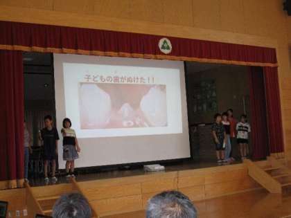 学校保健委員会1 公開日 2023/07/03 更新日 2023/07/03 学校風景 今年の学校保健委員会は、テーマが「歯」です。学校歯科医、学校薬剤師の先生方がおいでになり、歯の健康について学びました。