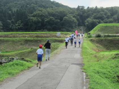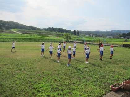 朝の涼しい時間帯に、ラジオ体操、坂道トレーニングを行いました。