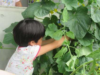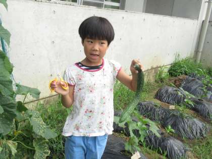 3連休明け、この間にも、野菜は順調に育っていました。ピーマンやきゅうりがたくさんしゅうかくできました。自分で育てた野菜、とてもおいしいそうです。