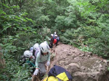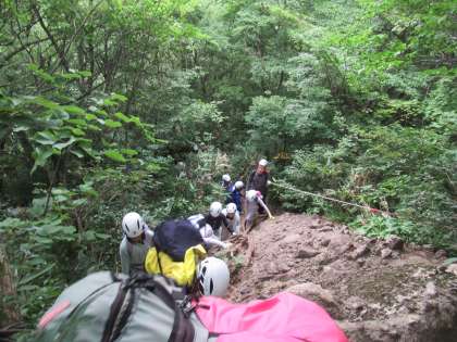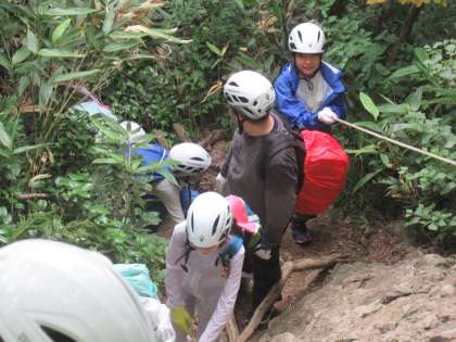 宿泊学習3 公開日 2023/07/20 更新日 2023/07/20 学校風景 来拝山は、途中から道が険しくなります。ごつごつした岩場や木の根の階段等を登りました。子供たちは、「がんばろう」「気をつけて」と声を掛け合いながら登っていきました。助け合う気持ちを育んでいました。