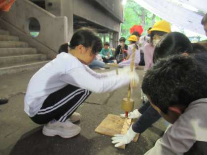 宿泊学習8 公開日 2023/07/20 更新日 2023/07/20 学校風景 午後からは、野外炊飯です。 ごはんをたき、カレーを作りました。 火おこし体験をしました。けむりがでて、火だねをつくることができる子もいました。