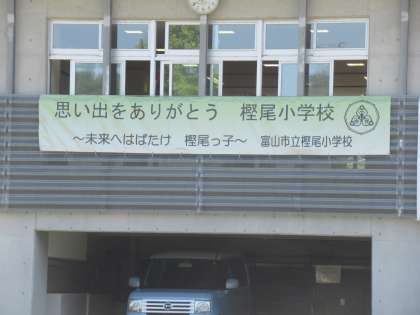 学校へ感謝の思いを表す横断幕を掲示しました。