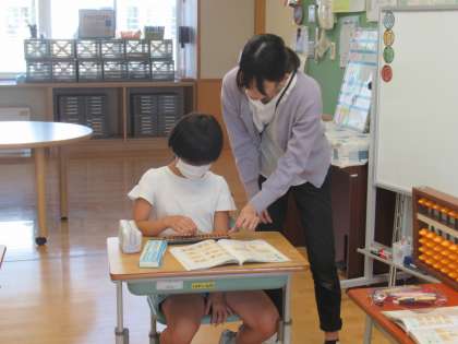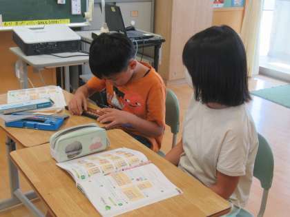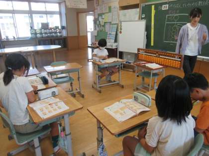 4年生は、算数の時間、そろばんを使って数を表していました。パチパチと音を立てながら、熱心に取り組んでいました。コンピュータが隆盛の時代ですが、ものを数に見立るという知恵を味わうことが出来たことでしょう。