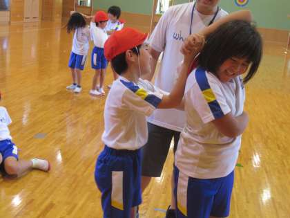 体育では、体をほぐす運動に取り組んでいました。いろいろなところを動かしてみることはとても大切ですね。