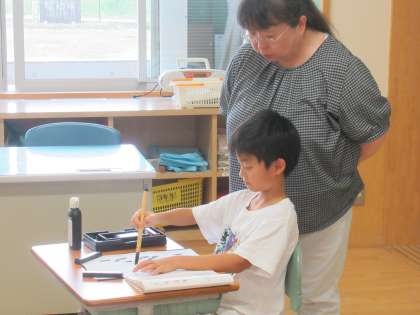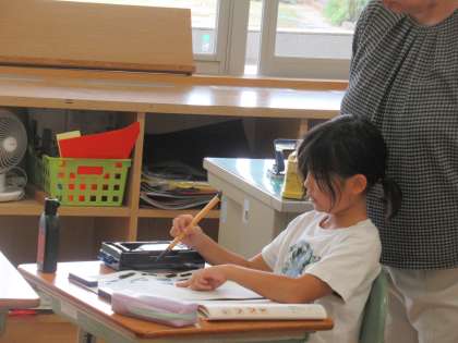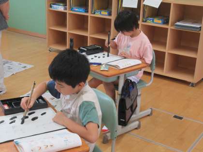 ポイントをおさえて 公開日 2023/08/30 更新日 2023/08/30 3年生 3年生書写の学習では、「点」の書き方に気をつけて書きました。「先がとがっているように」なるために、いろいろためしました。