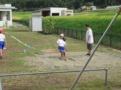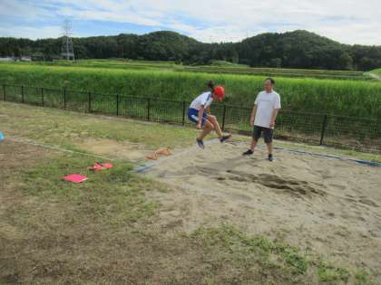 6年生は陸上記録会に向けて練習をしています。走り幅跳びでは、どのくらいの助走がよいかいろいろと試していました。自分に合う距離を見つけてほしいと思います。
