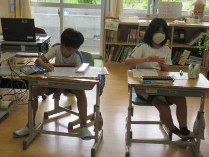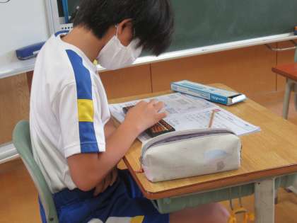 算数のドリルの直しを熱心に行っていました。しっかりと直すことで、さらに理解が深まりますね。