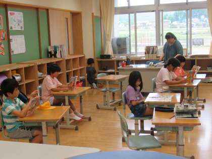朝の時間、子供たちは読書に取り組んでいます。心を落ちつけて、1日がスタートします。