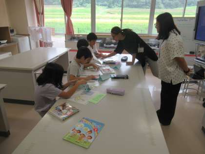 英語で、色の言い方を学習しました。好きな色のティーシャツづくりを楽しんでいました。