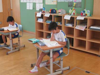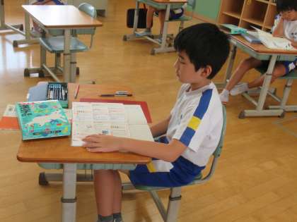 国語で辞書の使い方を学んでいます。夢中になって辞書を見ていました。いろいろな言葉が身についていきますね。