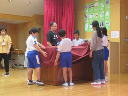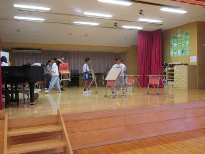 式の後、高学年の子供たちが後片付けを行います。すばやく取り組む姿は、さすが高学年です。