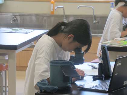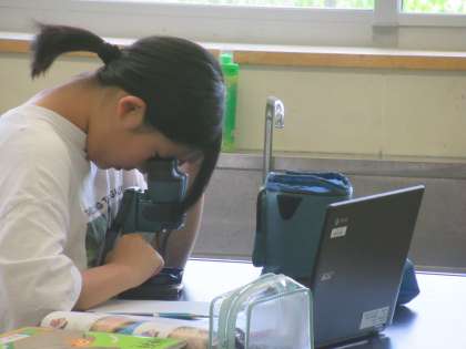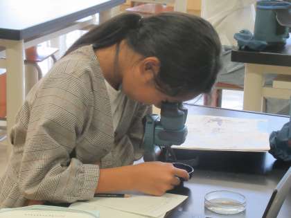 地層で見える土を双眼顕微鏡で拡大して見ました。粒の違いがよく分かりました。